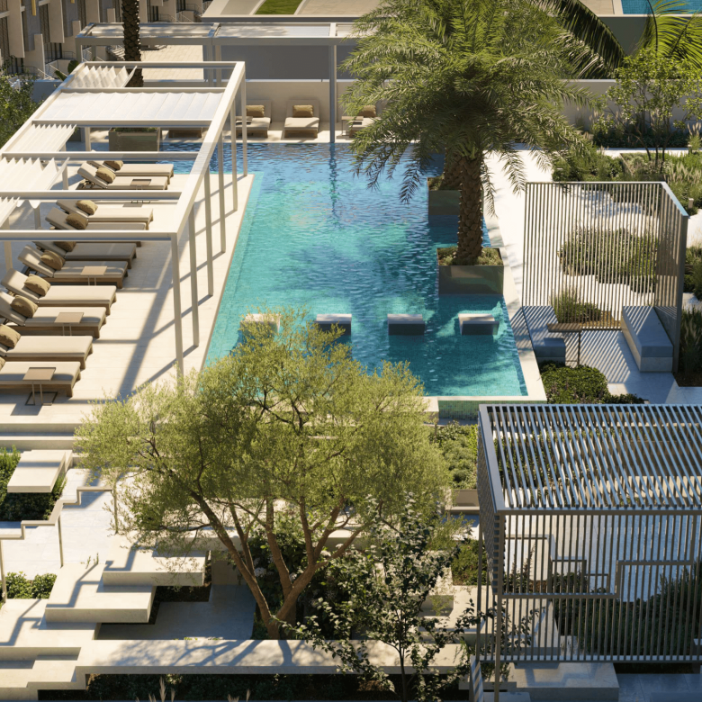 The JVC area has a prime location, allowing V1TER residents to quickly reach key points in Dubai. Dubai Marina, Marina Mall, Emirates Mall and Palm Jumeirah are just 15 minutes away by car. Business Bay, Downtown, Burj Khalifa and Dubai Mall are approximately 25 minutes away, while Dubai International Airport is 30 minutes away. Within walking distance are the Circle Mall shopping center, schools, kindergartens, medical institutions, cafes, restaurants and retail outlets.